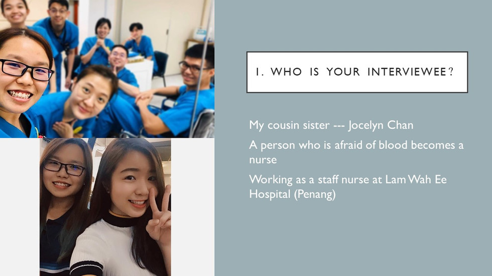 I asked my cousin for an interview, because she is a medical staff, I feel very respectful of her, so I want to learn more from him and learn more stories I have never been in touch with. This is interesting because she has been afraid of blood since she was a child, but what surprised me is that she can overcome psychological obstacles for her dreams and achieve her own wishes, so I think this is a model that everyone should learn.